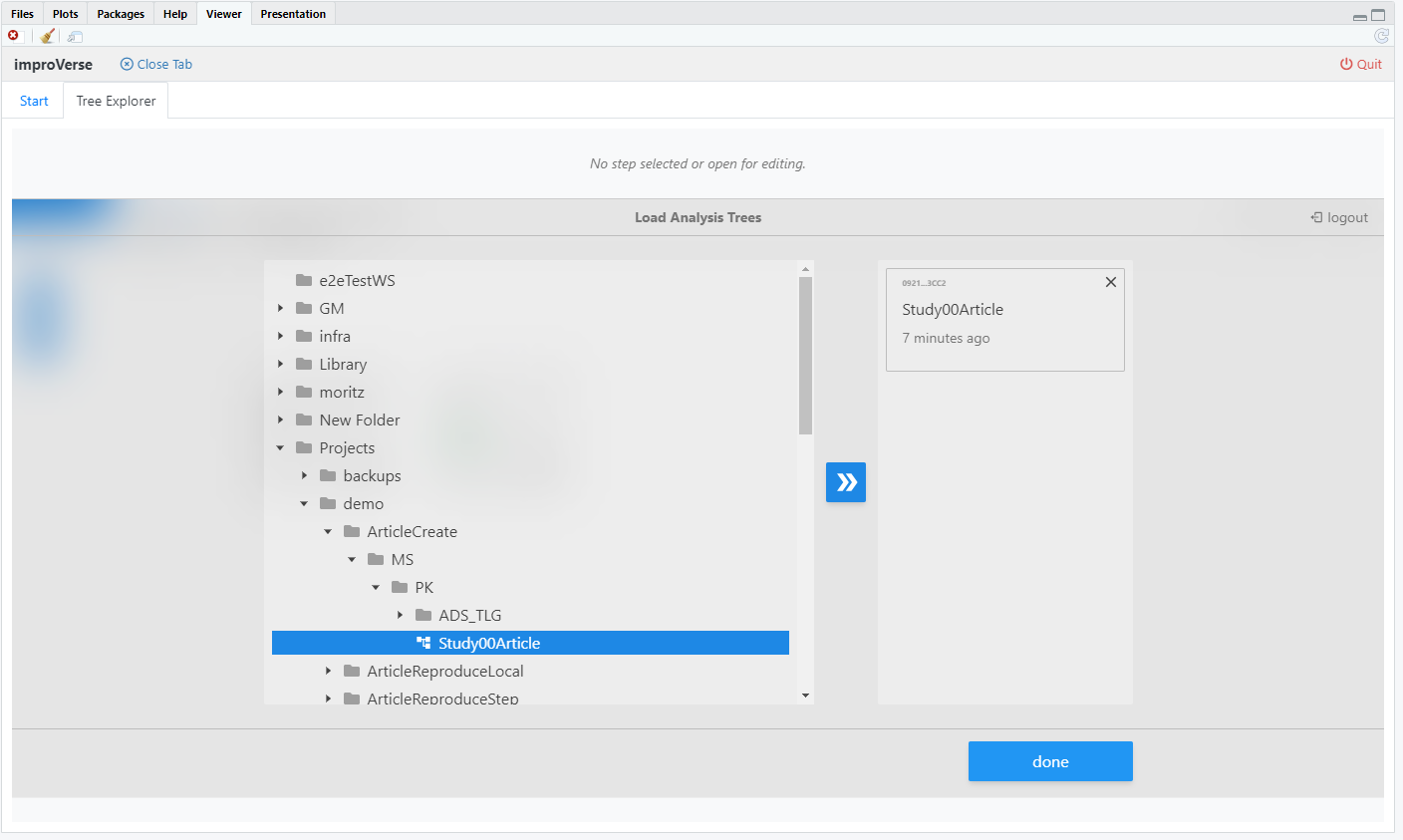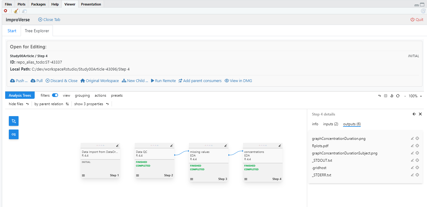 This tutorial demonstrates the complete roundtrip workflow for developing analysis steps within RStudio using the improVerse integration. The workflow illustrates how to: