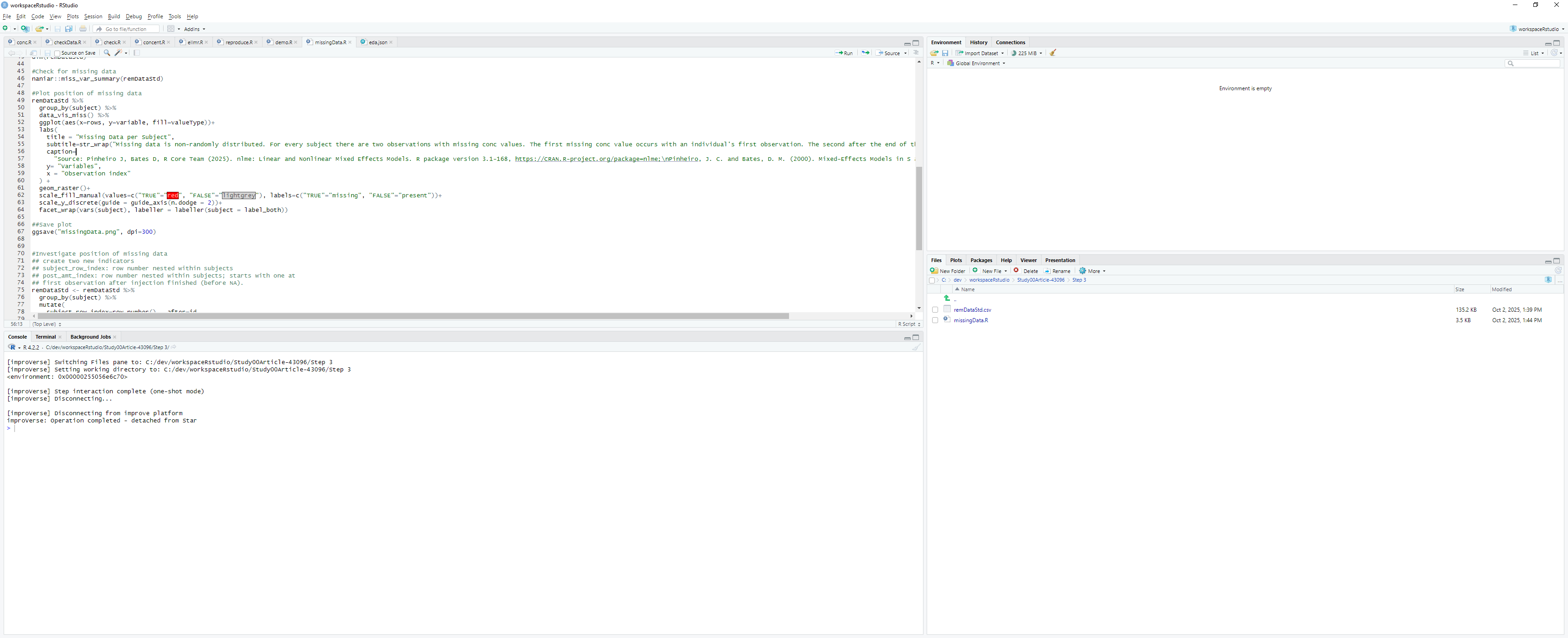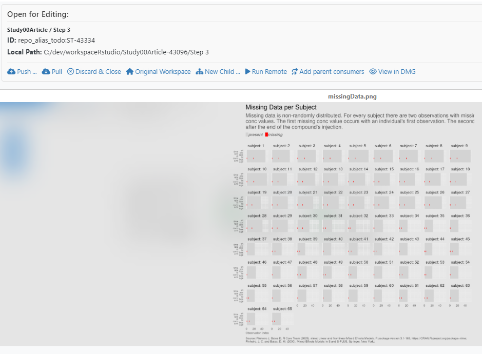 Figure 9: RStudio switches to the step workspace directory, displaying checked-out files