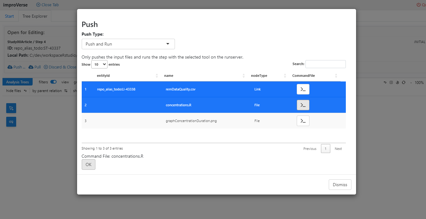 Figure 11: Select “Push and Run” to upload files and execute the step